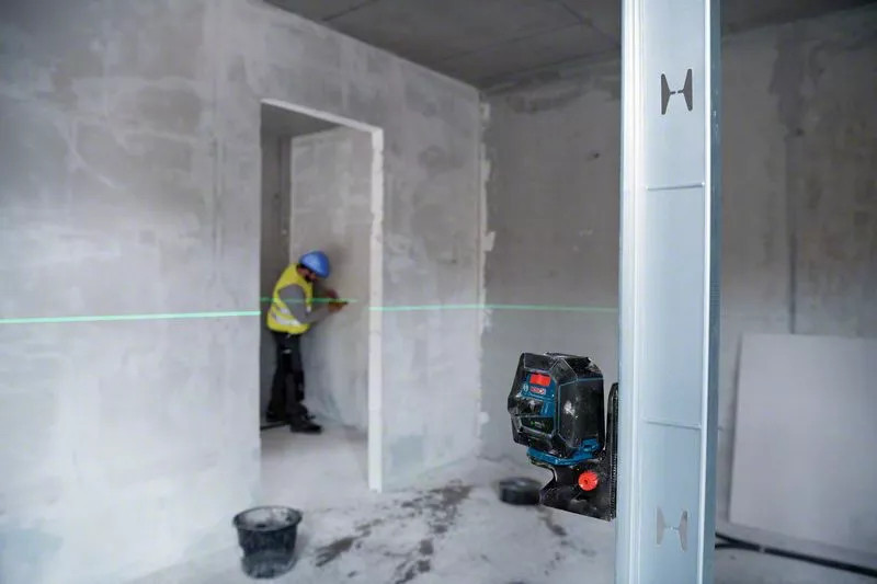 BOSCH 0601066M00 GCL 2-50 G zöld Kombilézer + RM 10 Tartó + 4 db 1,5 V-os LR6 (AA)