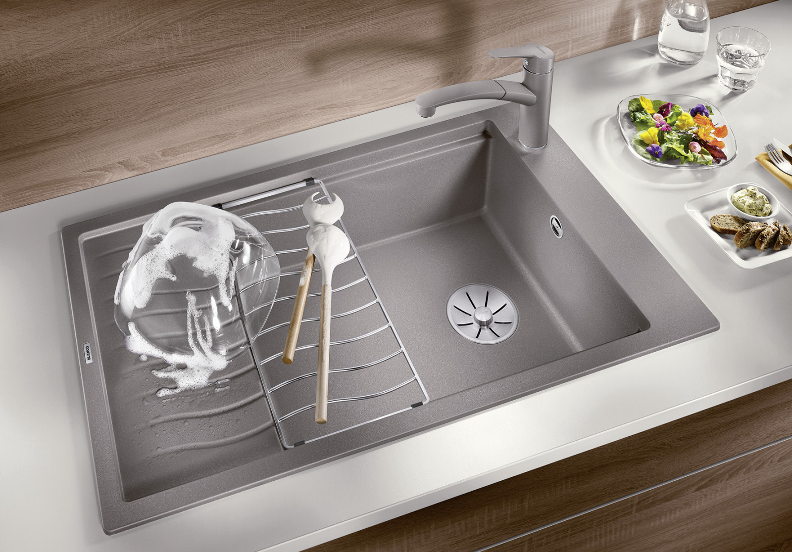 • Inštalácia: Moderný, vlnitý dizajn drezu a jeho príslušenstva je v dokonalom súlade.