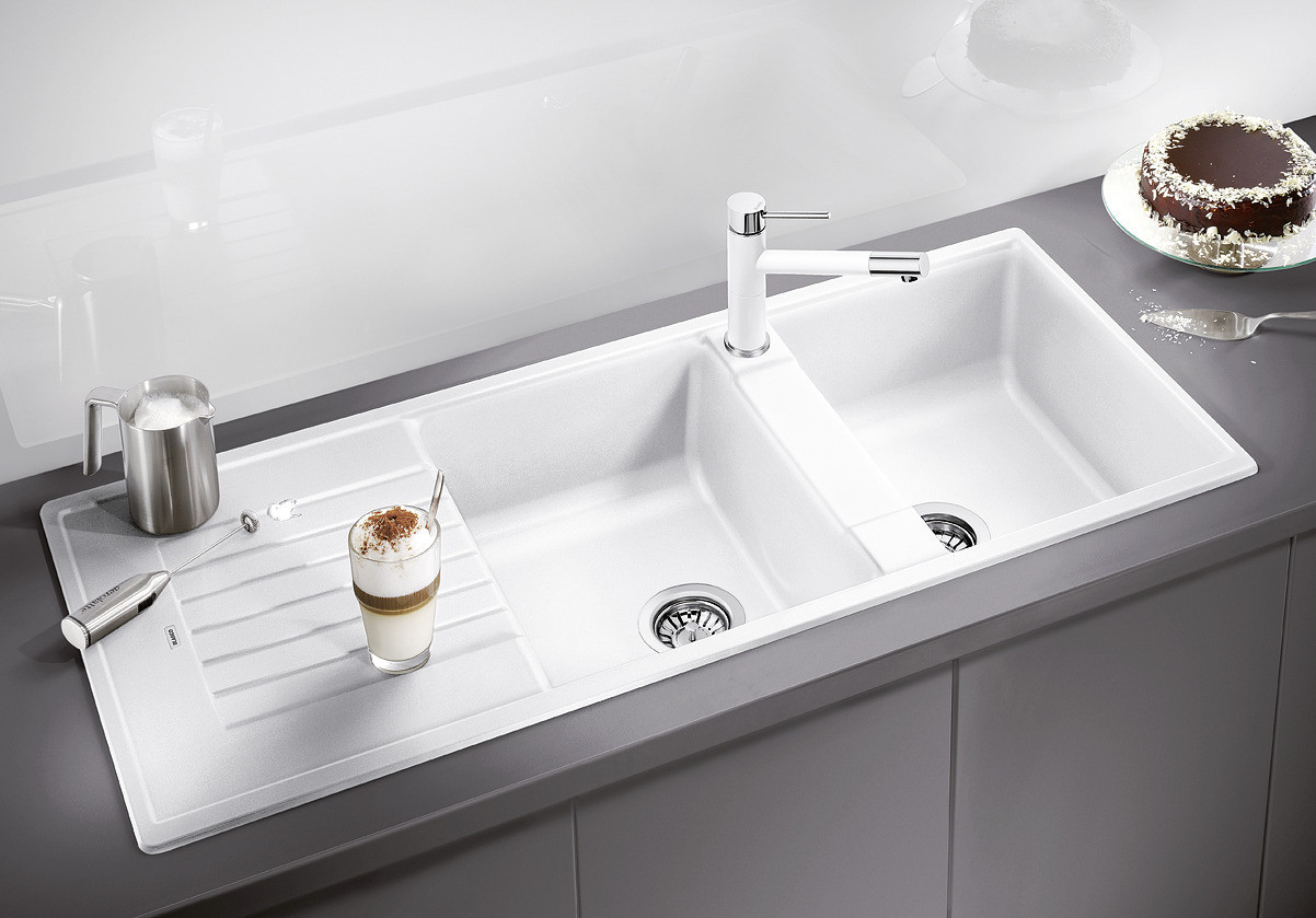 • A veľký, dvojdrezový drez és a csepegtetőfelület sok pohodlný helyet biztosít.