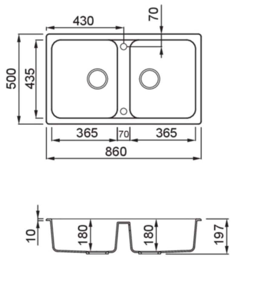 • Granitek materiál: Prírodný granit a akrylátová živica – výnimočná odolnosť voči teplu, nárazom a poškriabaniu.