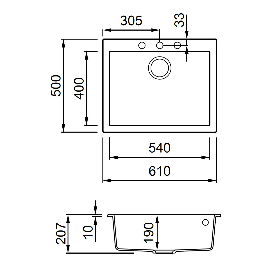 • Granitek materiál: Kombinácia prírodného granitu a akrylátovej živice – odolnosť voči teplu, nárazom a poškriabaniu.