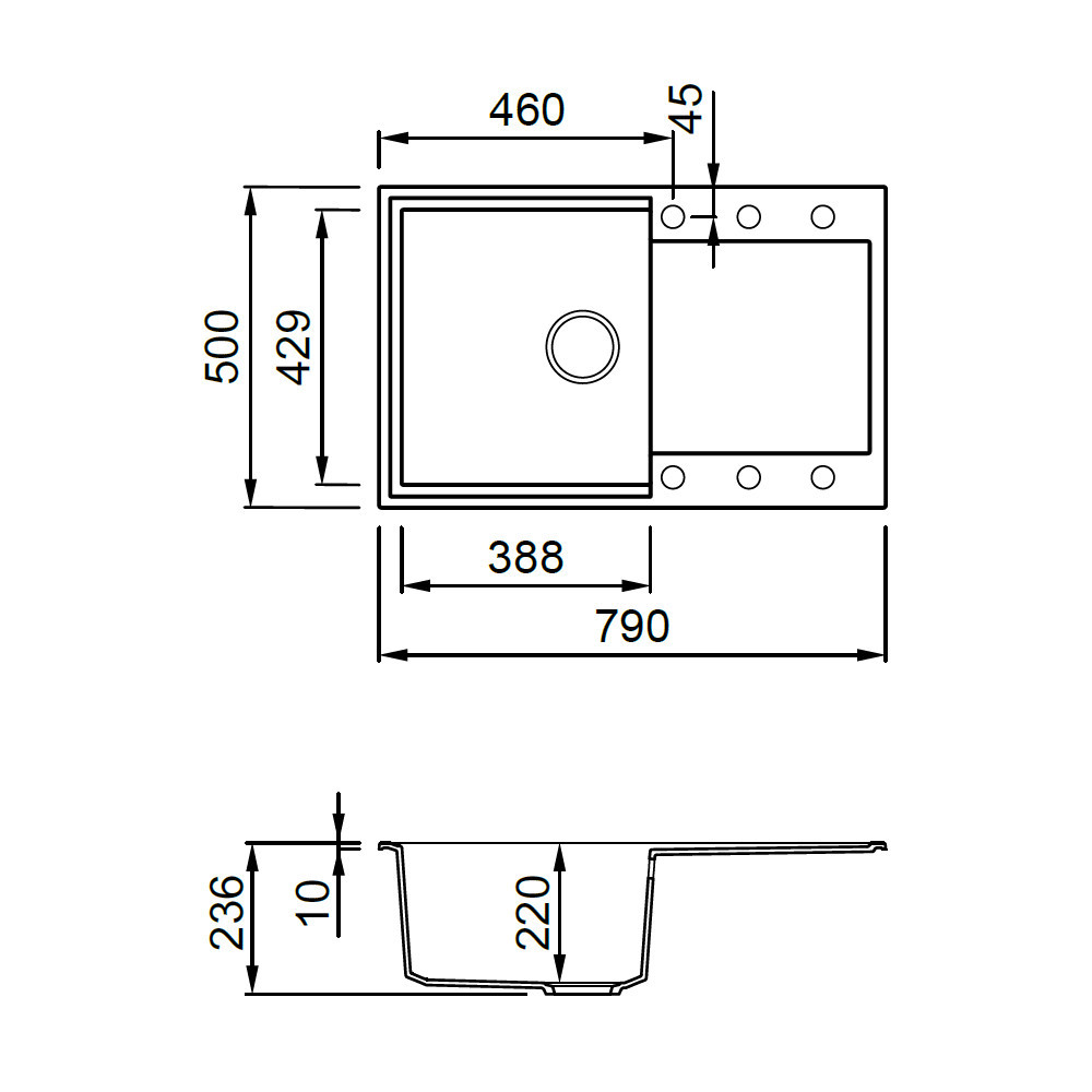 3. Granitové drezy