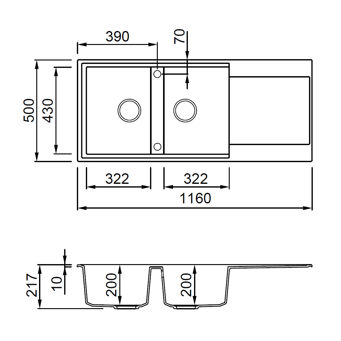 Drez ELLECI Easy 500 z kolekcie Easy predstavuje spojenie základného, nadčasového dizajnu so špičkovou funkčnosťou. Farba jemná teplá biela farba G39 Bianco soft harmonicky zapadá do moderných aj klasických kuchýň. Vďaka technológii Granitek je drez mimoriadne odolný voči teplu, nárazom aj poškriabaniu.