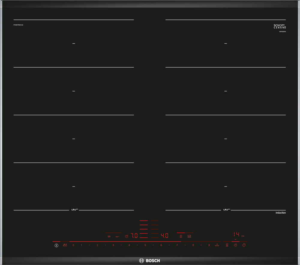 BOSCH PXX675DC1E Serie|8 Beépíthető indukciós főzőlap | 60cm | Fekete